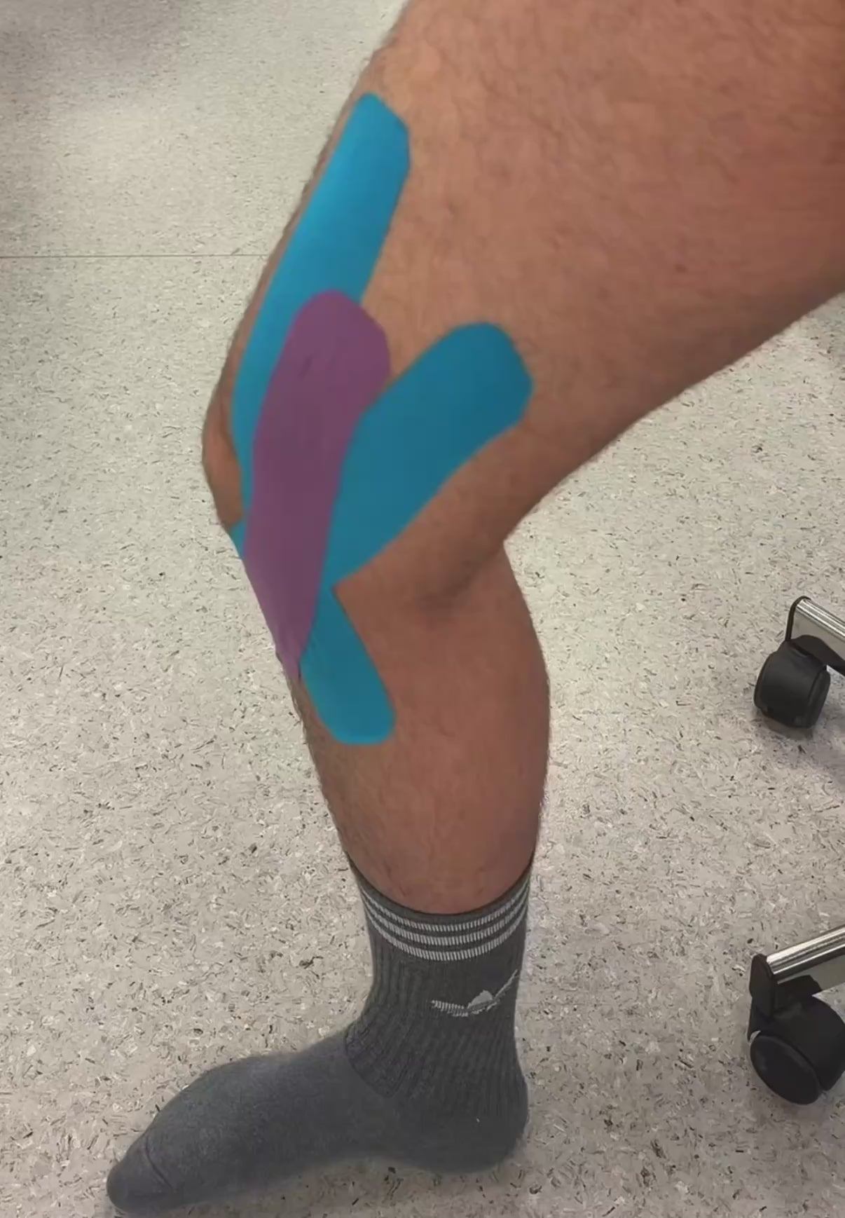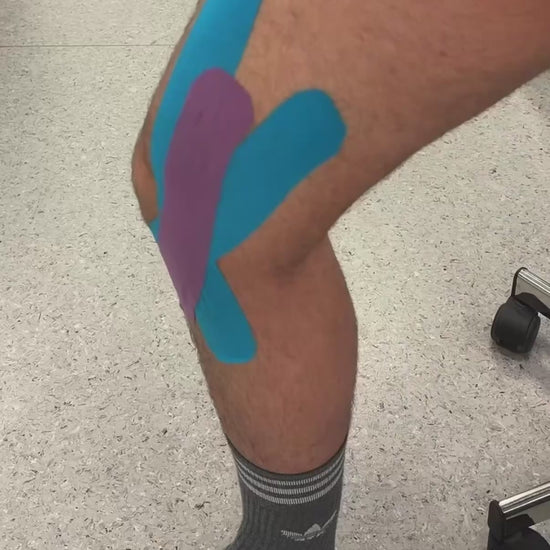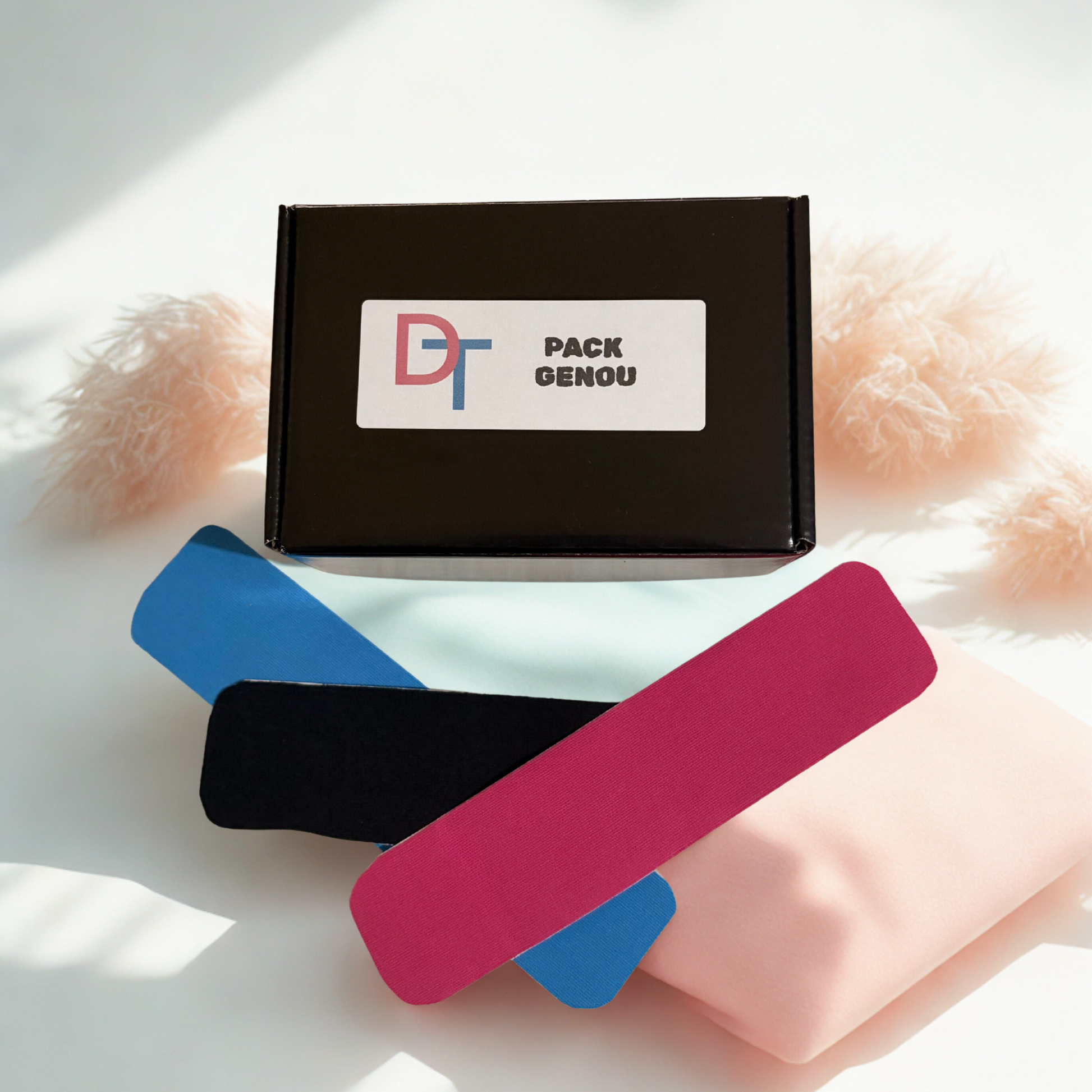 Scanne le QR code → Tu vois exactement comment poser le tape autour de la rotule ou en décharge tendineuse.